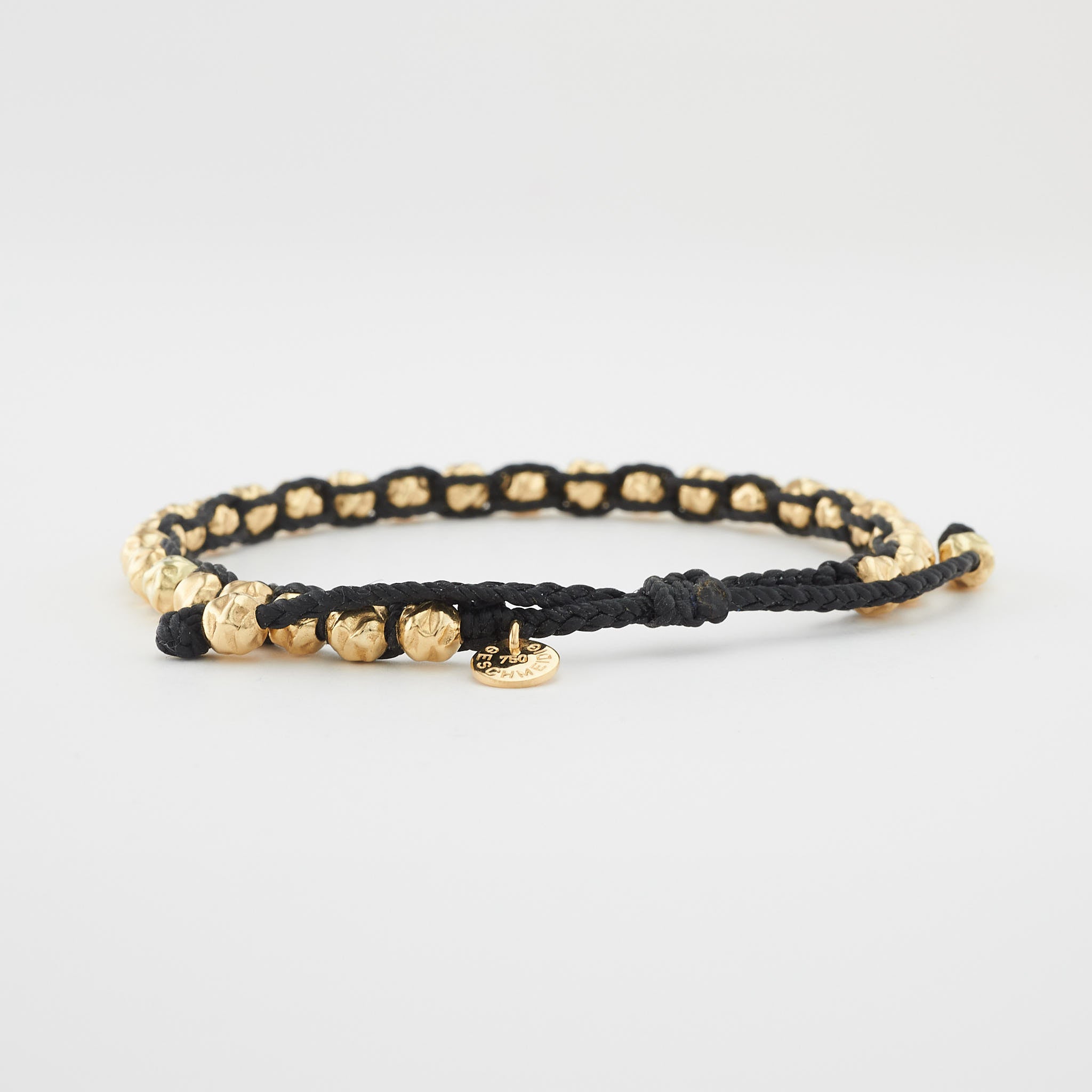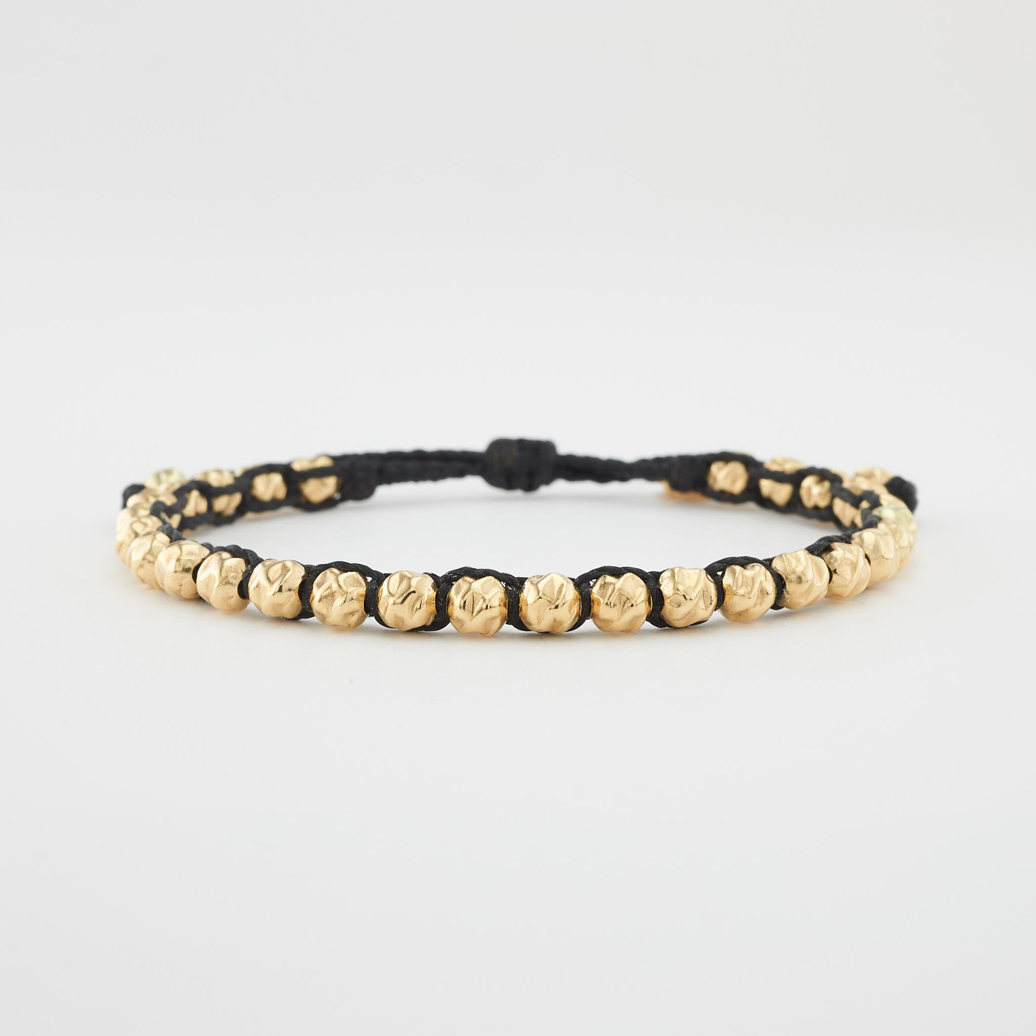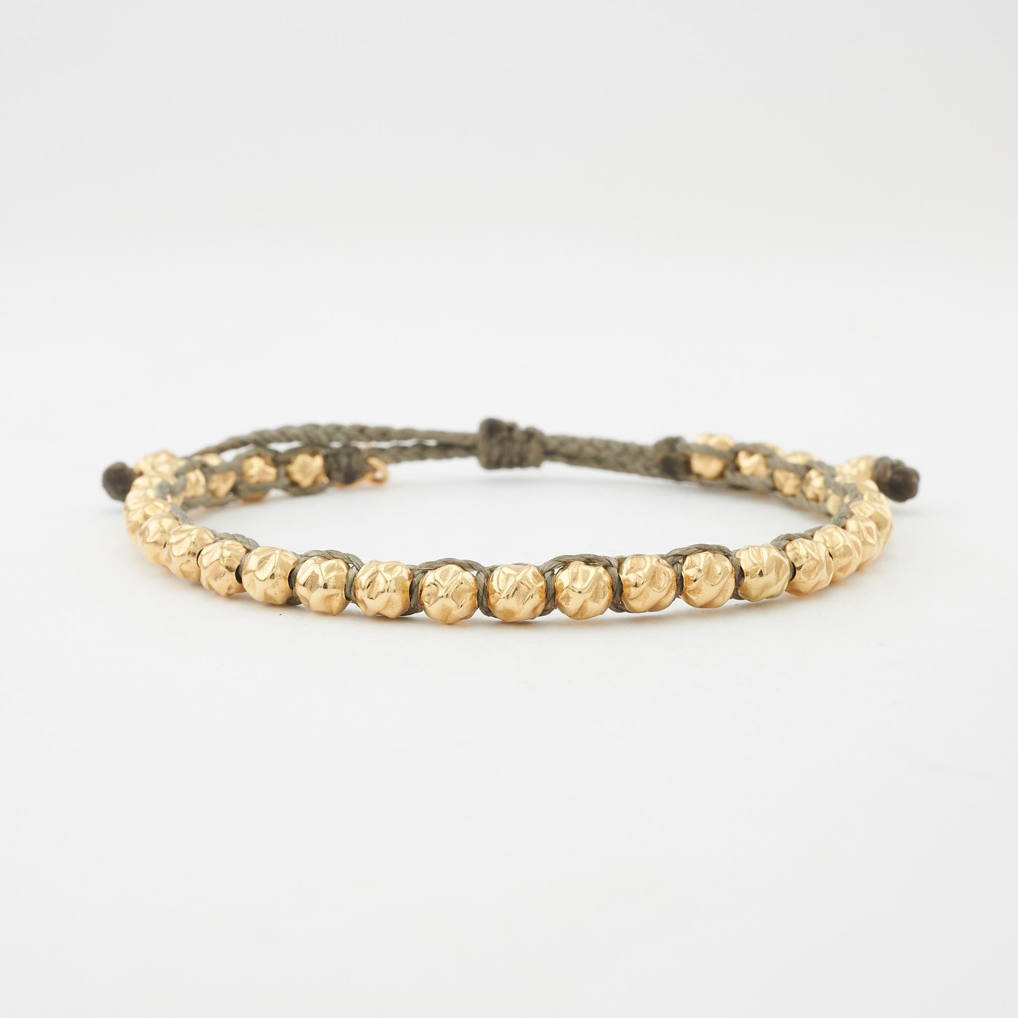 handgeknüpftes Armband aus massiven, gehämmerten Gelbgold Perlen ( 5 mm )