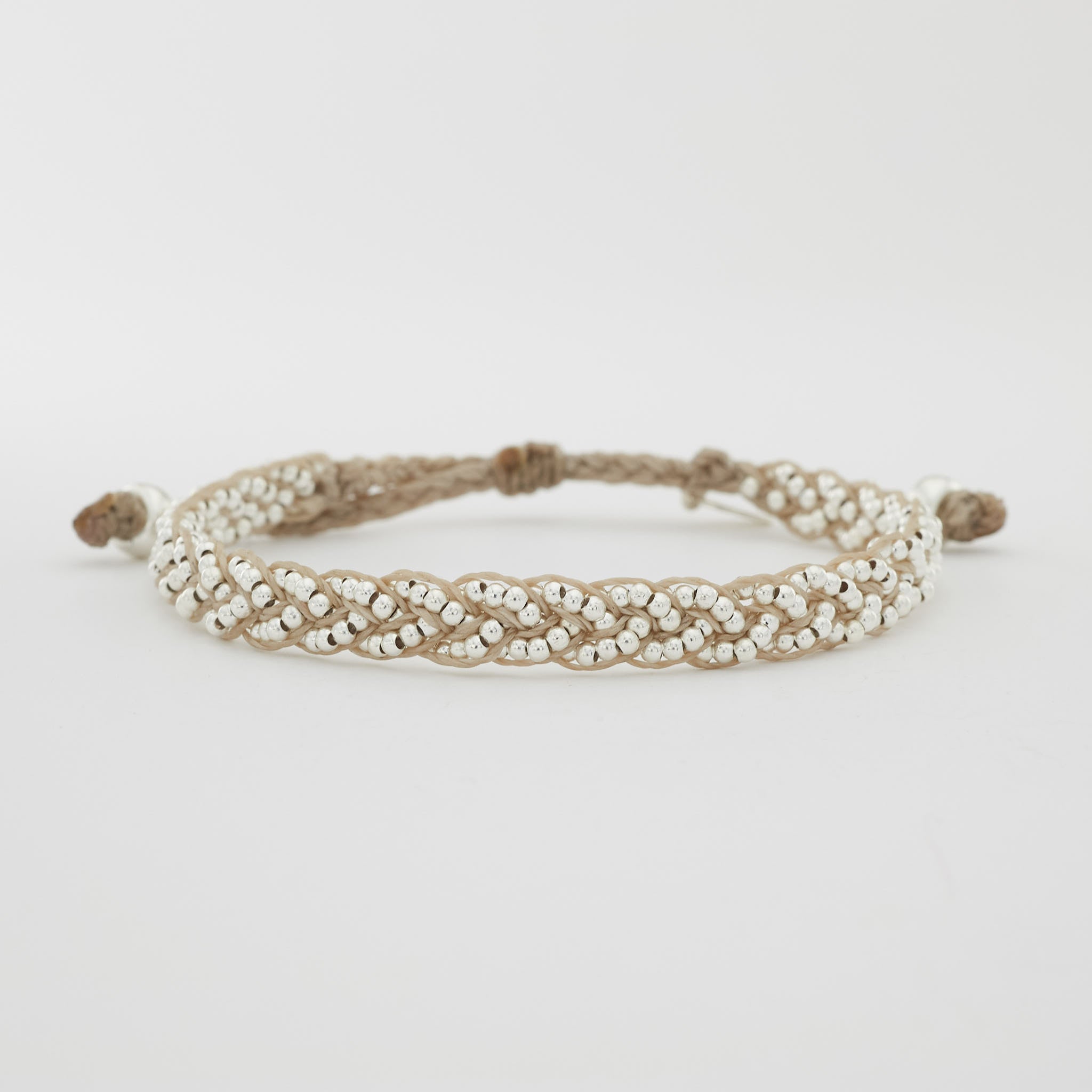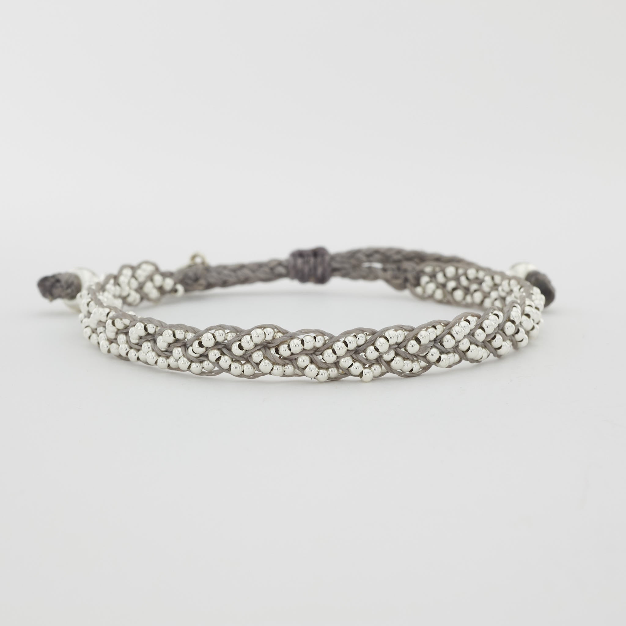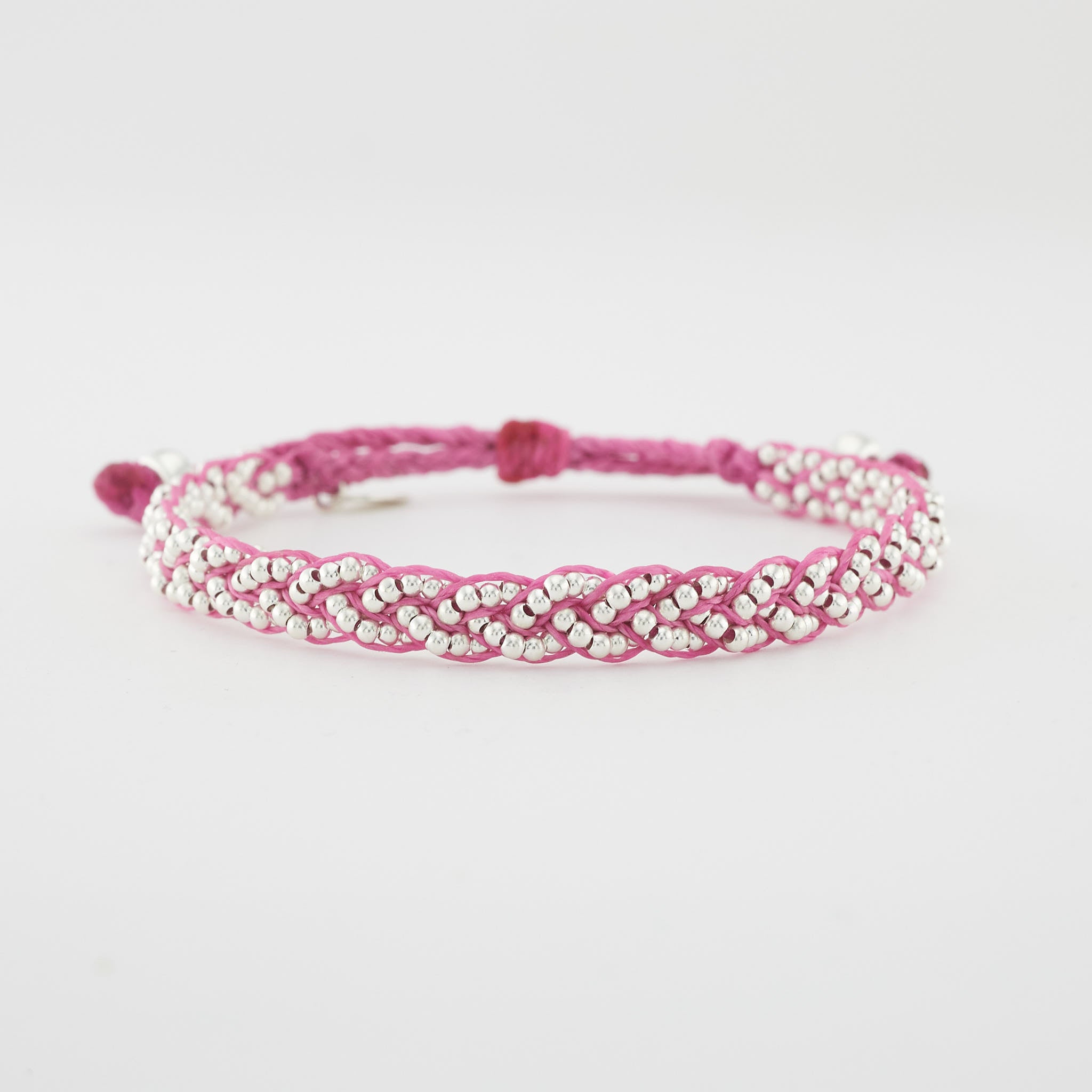 von Hand geflochtenes Armband mit 3 Sterling Silber Perlensträngen ( 1,8 mm ) und 6 unifarbenen Schnüren