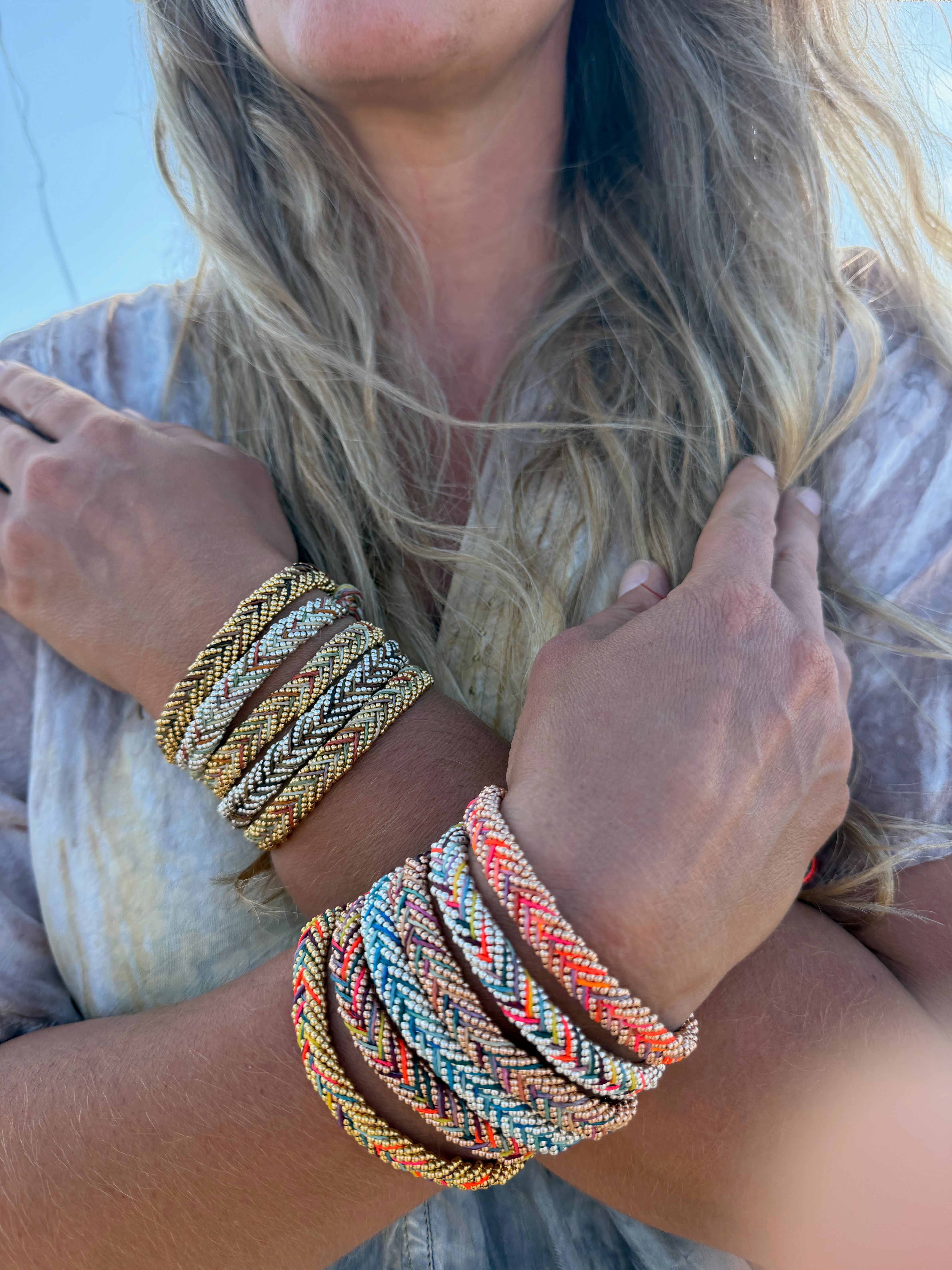 von Hand geflochtenes Armband aus filigranen, funkelnden 18 Karat Gelbgold vergoldeten 925 Sterling Silber Perlen ( 1,8 mm ); erhabene Fischgrätstruktur