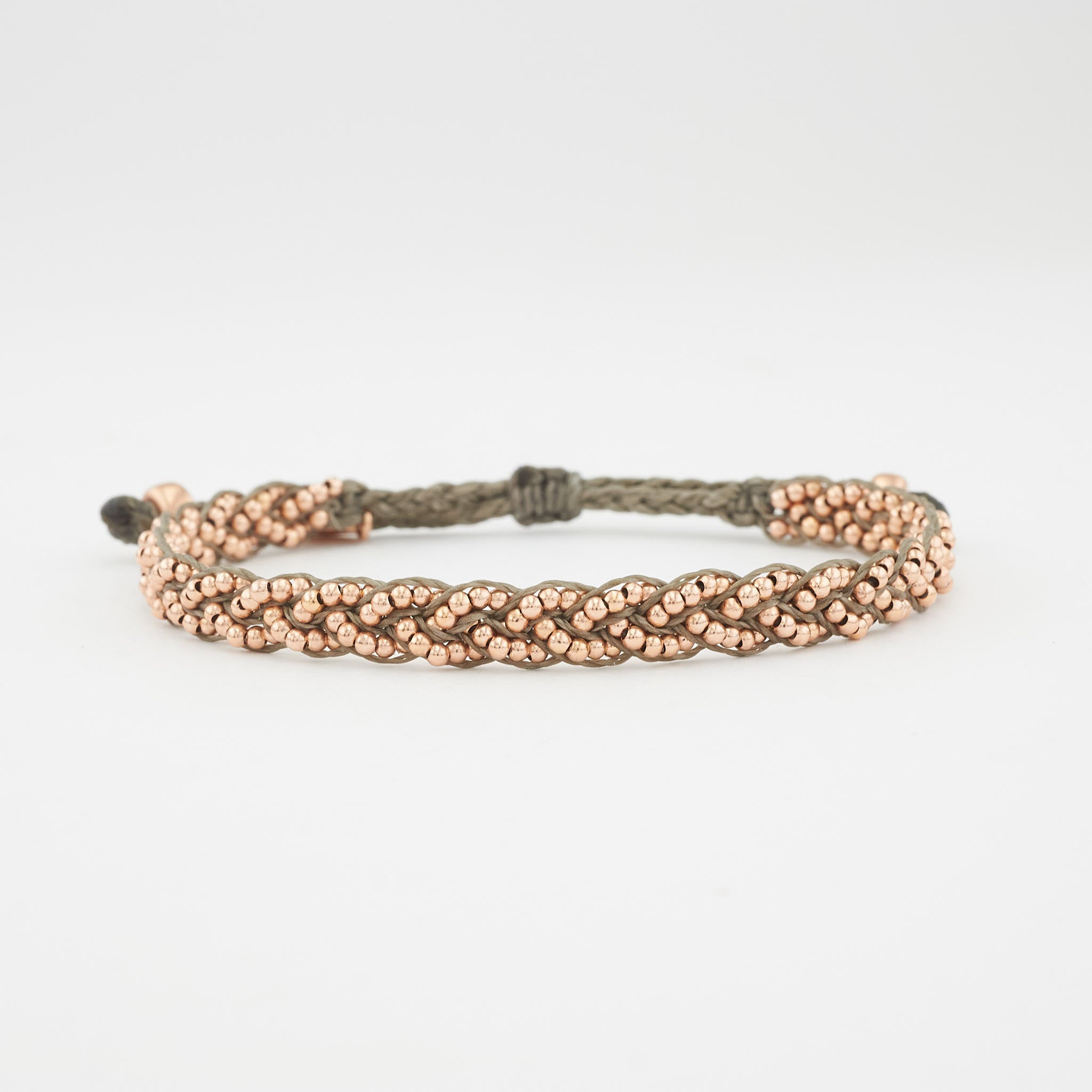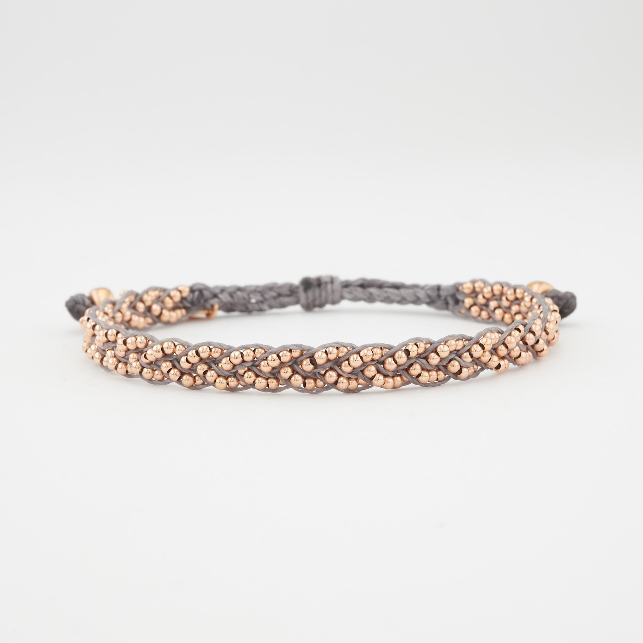 von Hand geflochtenes Armband mit 3 18 Karat Roségold vergoldeten Sterling Silber Perlensträngen ( 1,8 mm ) und 6 unifarbenen Schnüren