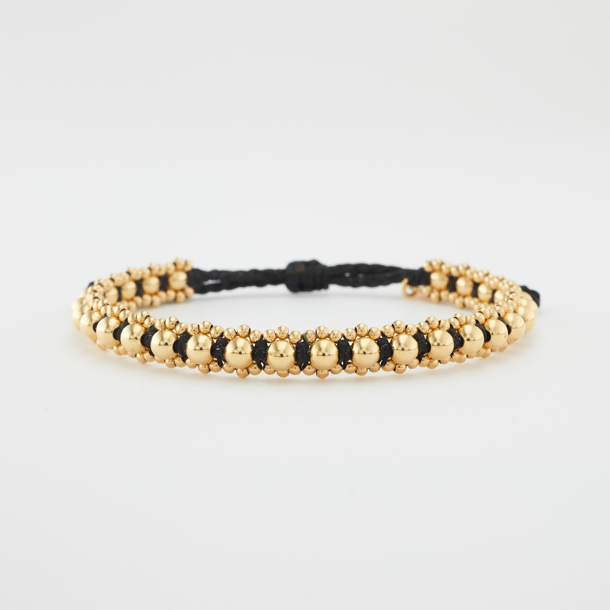 handgeknüpftes Armband aus kleinen und größeren 18 Karat Gelbgold Perlen ( 1,8 & 4 mm)