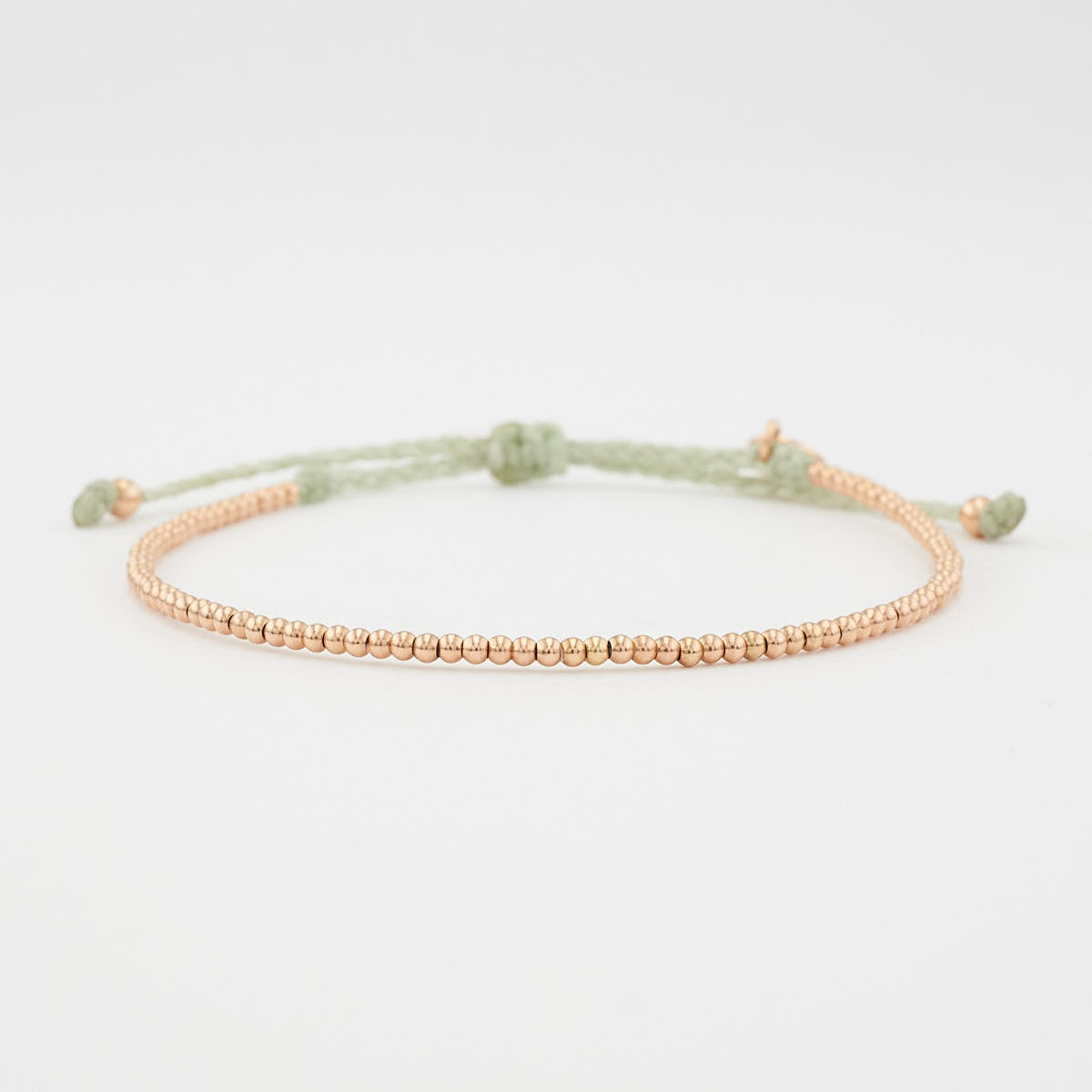 handgefertigtes Armband aus filigranen 18 Karat Roségold Perlen (1,8 mm); zart und dennoch robust