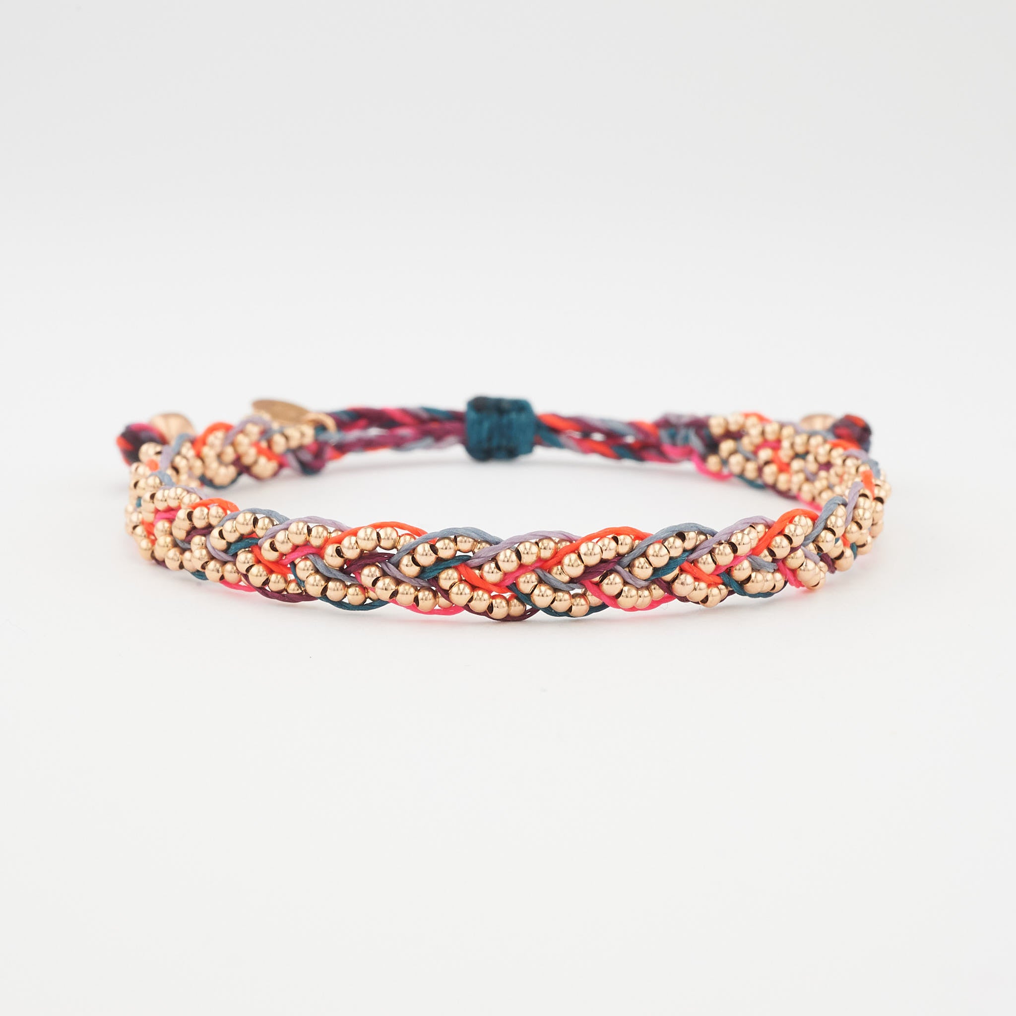 von Hand geflochtenes Armband aus filigranen 18 Karat Roségold vergoldeten 925 Sterling Silber Perlen ( 1,8 mm ); aufwändig und komplex