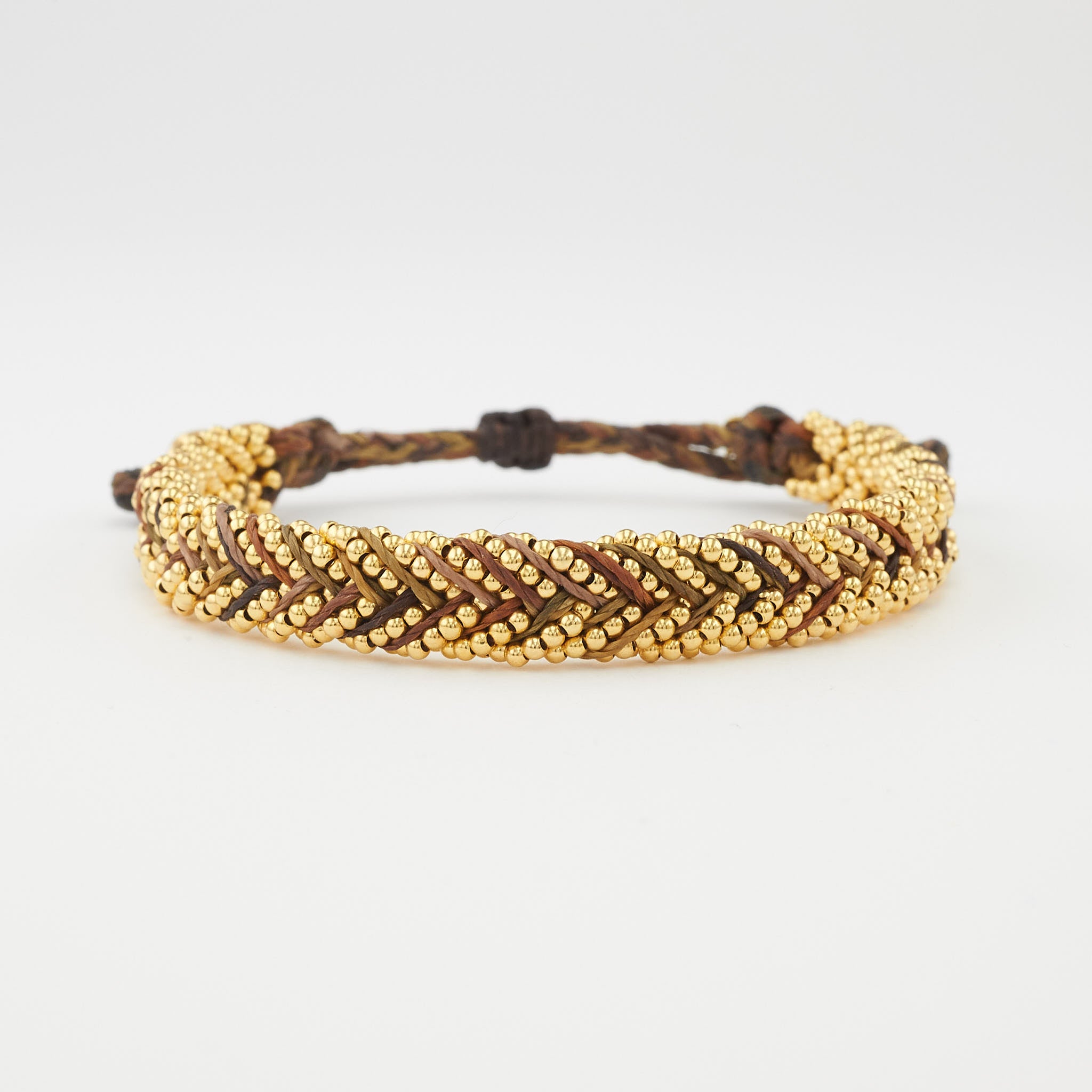 von Hand geflochtenes Armband aus filigranen, funkelnden 18 Karat Gelbgold vergoldeten 925 Sterling Silber Perlen ( 1,8 mm ); erhabene Fischgrätstruktur