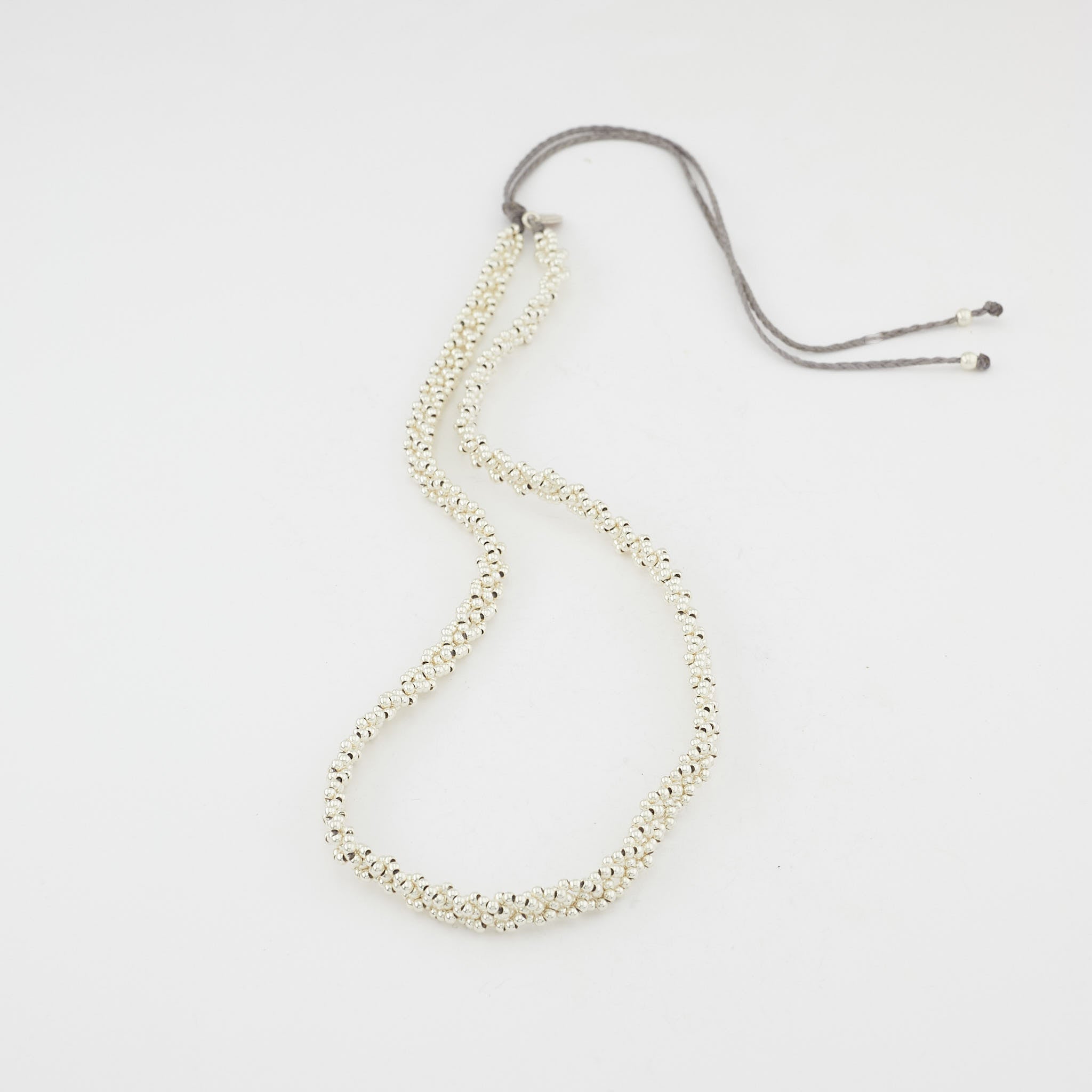 handgeflochtene Kette aus 925 Sterling Silber Perlen (1,8 mm) mit 3 Strängen