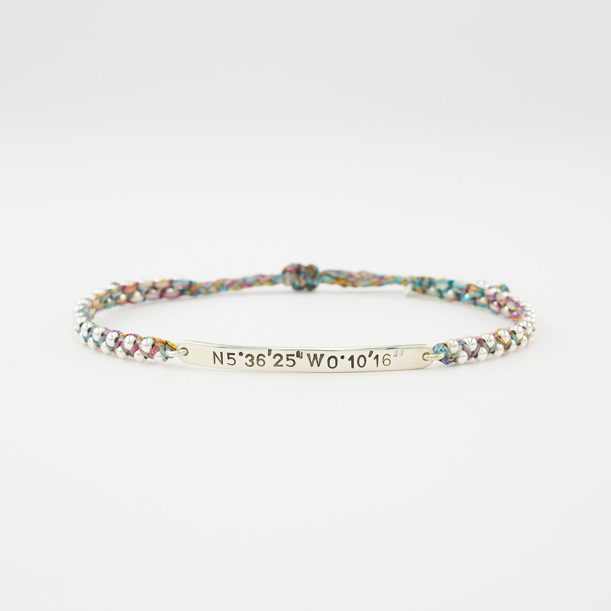 handgefertigtes und personalisierbares Namensarmband mit filigranen 925 Sterling Silber Perlen ( 2 mm ) und leicht gebogenen 925 Sterling Silber Plättchen ( 37x3,5x1mm ) mit beweglichen Ösen, welches beidseitig beschriftet werden kann; Schrift hat eine Höhe von 1,5 mm und es können bis zu 20 Zeichen einpunziert werden; zart und dennoch robust