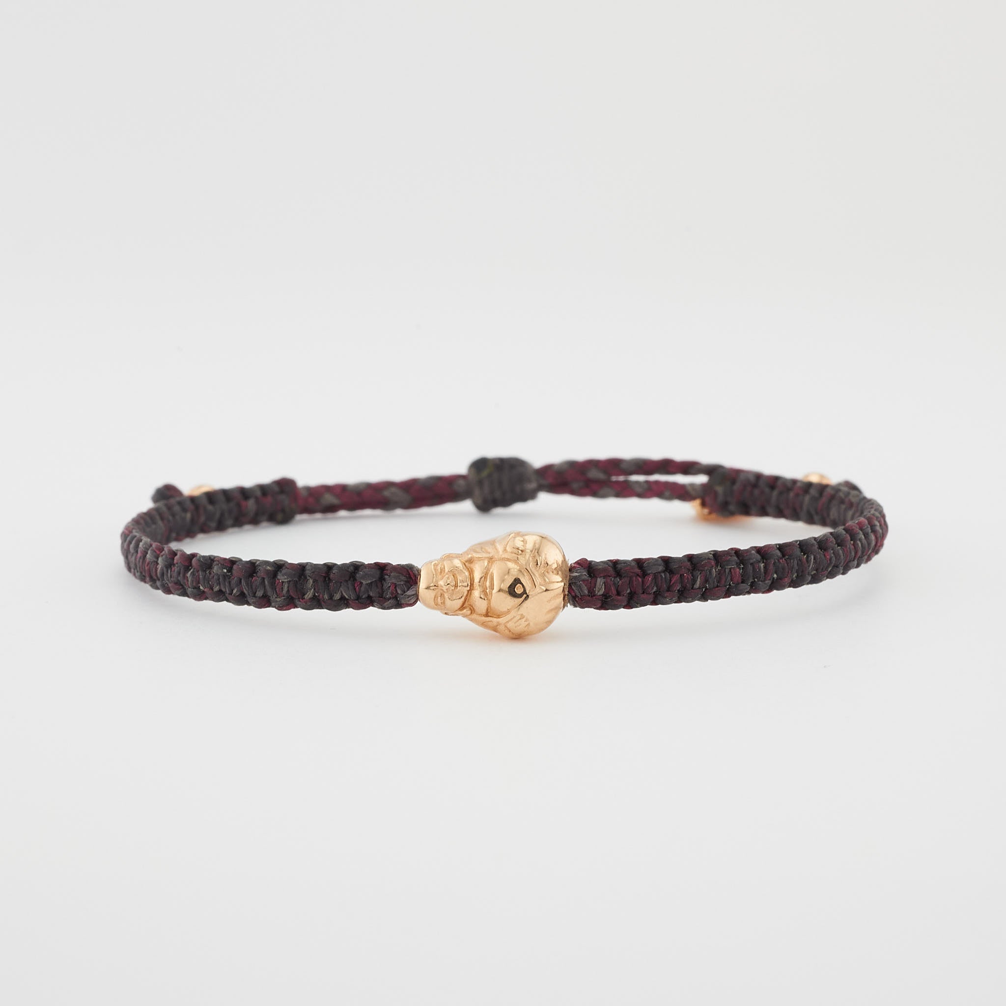 handgeknüpftes Armband mit massivem Buddha (ca. 12 x 9 mm) aus 18 Karat Roségold und eigener Produktion, der gute Laune, Ruhe und Gelassenheit ausstrahlt