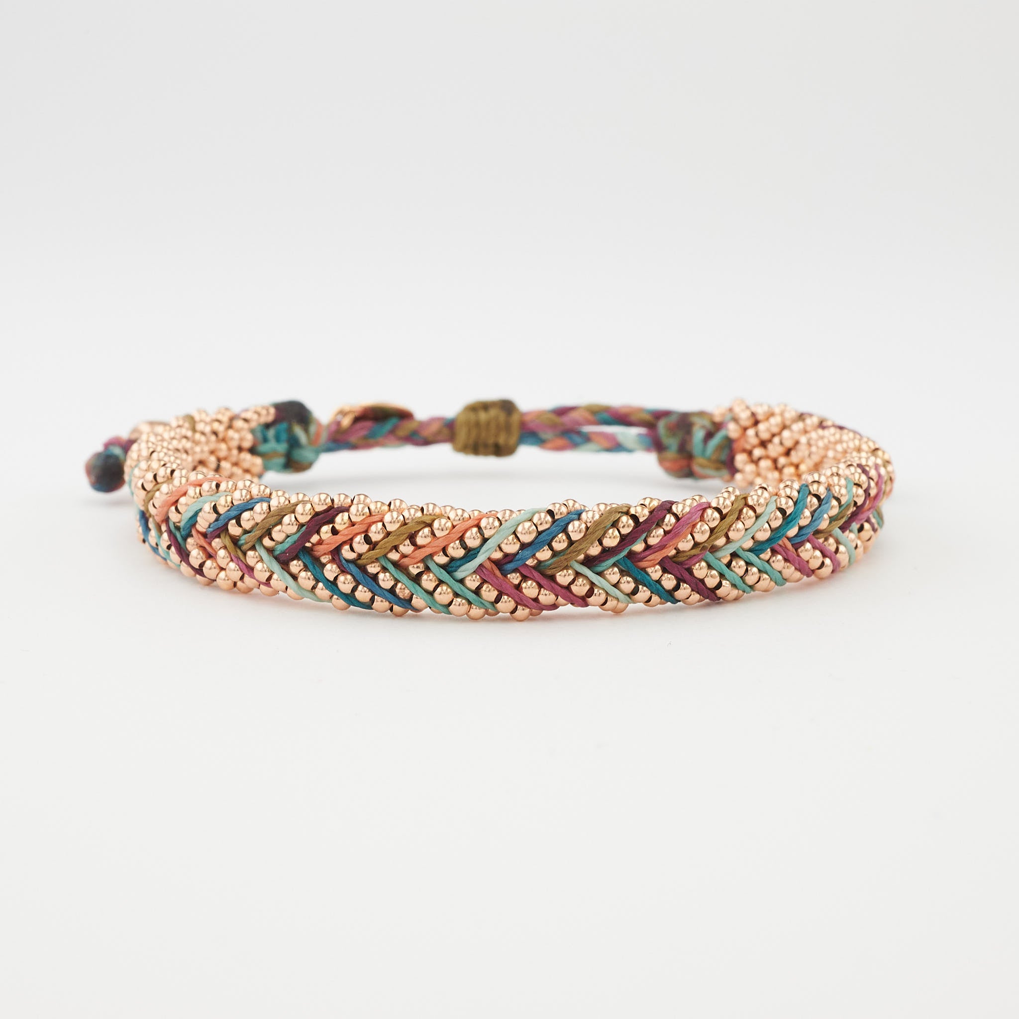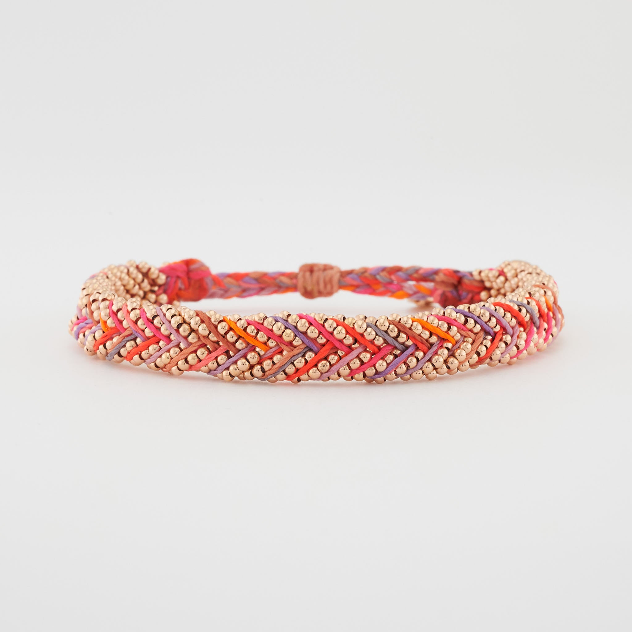 von Hand geflochtenes Armband aus filigranen, funkelnden 18 Karat Roségold vergoldeten 925 Sterling Silber Perlen ( 1,8 mm ); erhabene Fischgrätstruktur